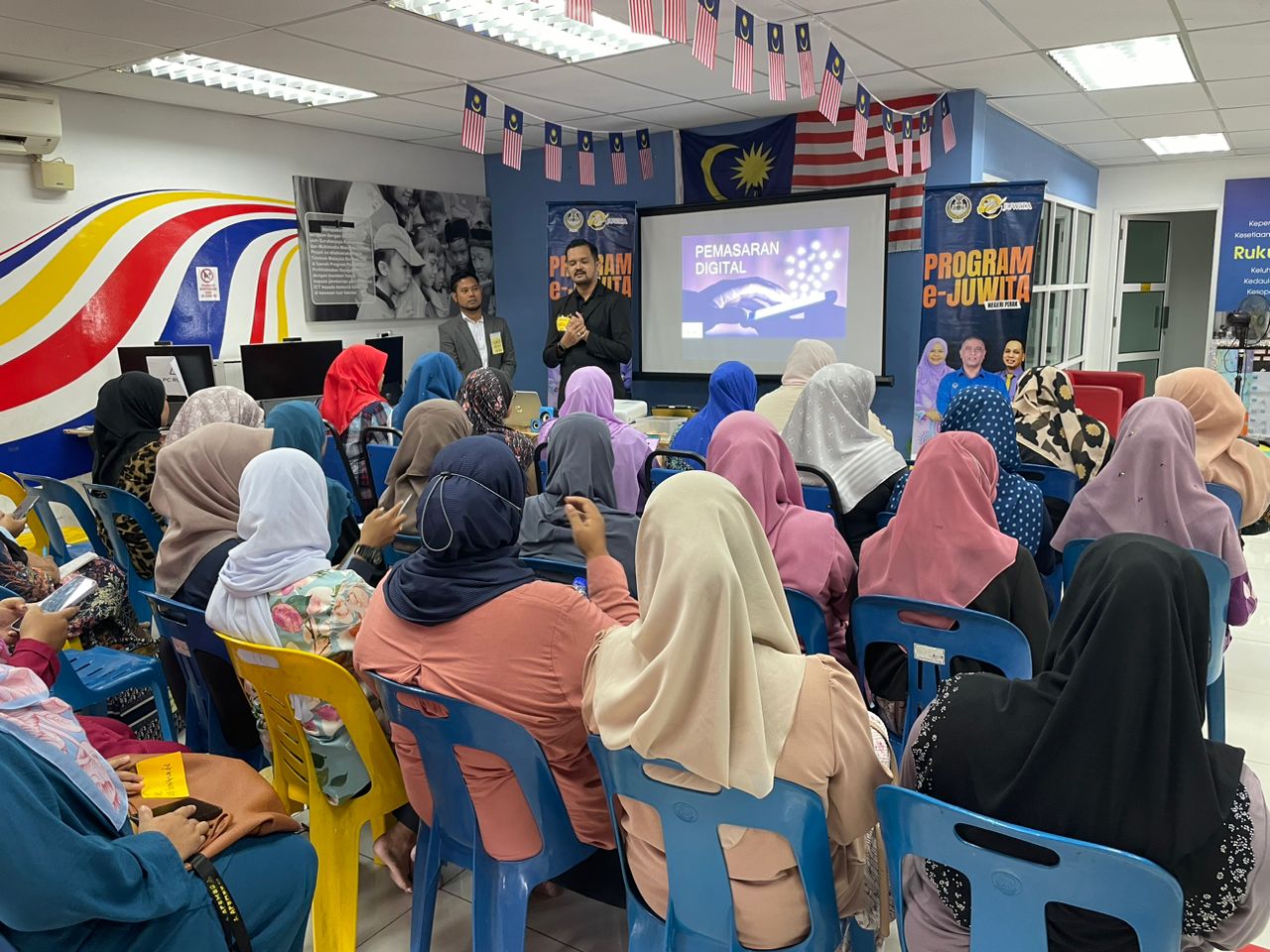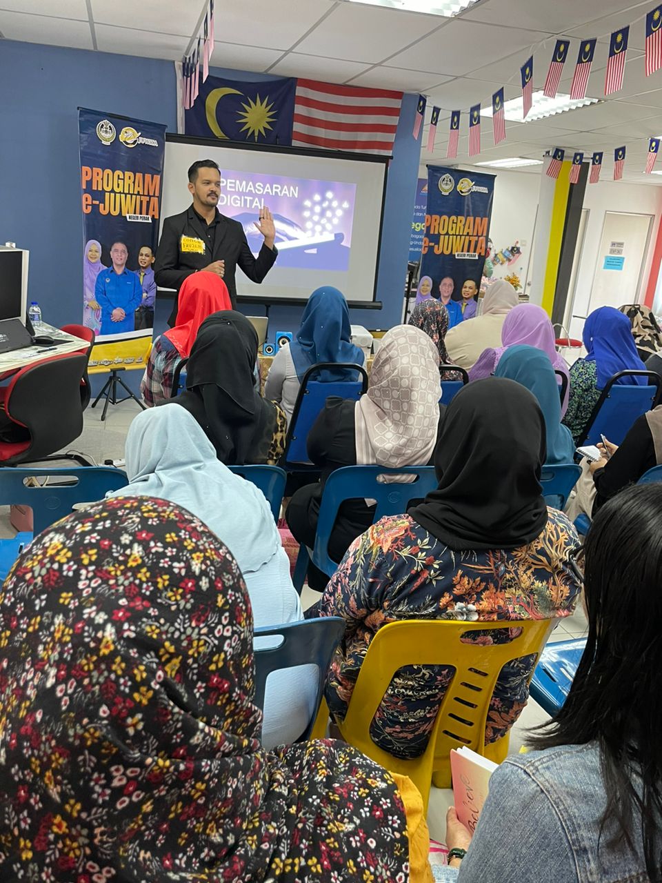 Program : Program Pemasaran Digital Wanita E-Juwita Negeri PerakTarikh : 5 Oktober 2023Masa : 9.00 – 5.00 ptgTempat : PEDi KDAST2Peserta : Usahawan